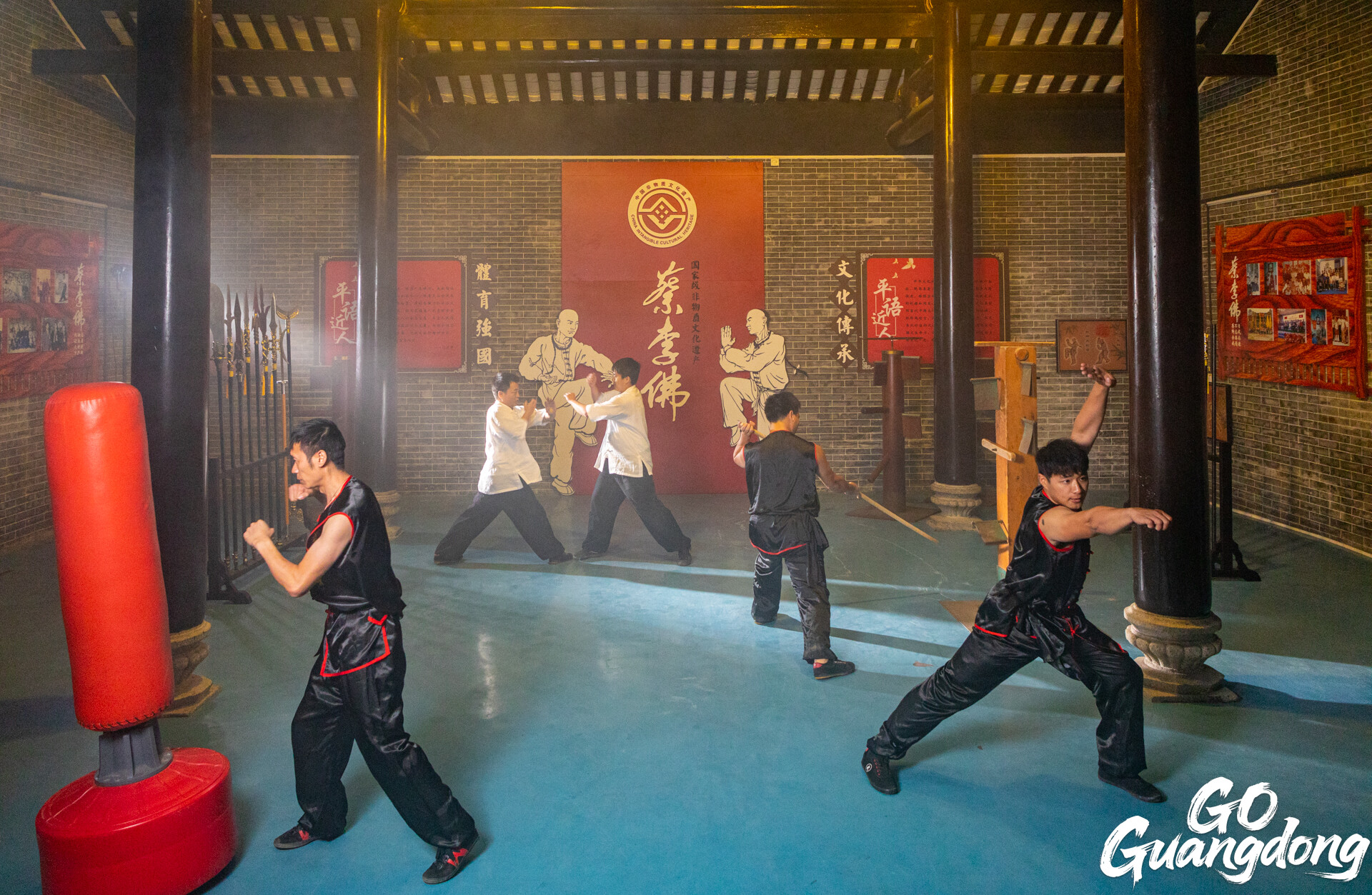 Martial art training at the training hall of Jingmei Village, Jiangmen