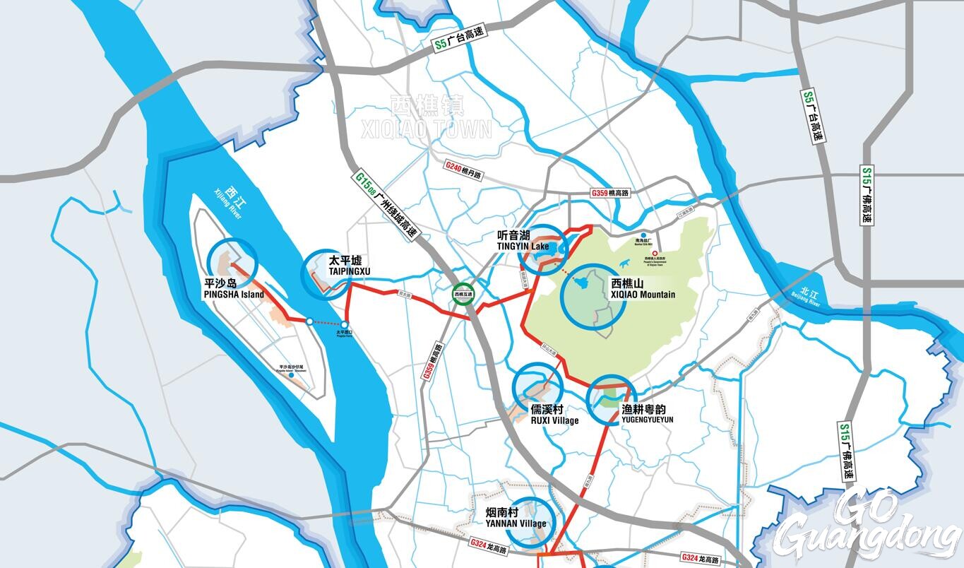 Route 1: Tingyin Lake - Xiqiao Mountain - Nanhai Silk Mill: