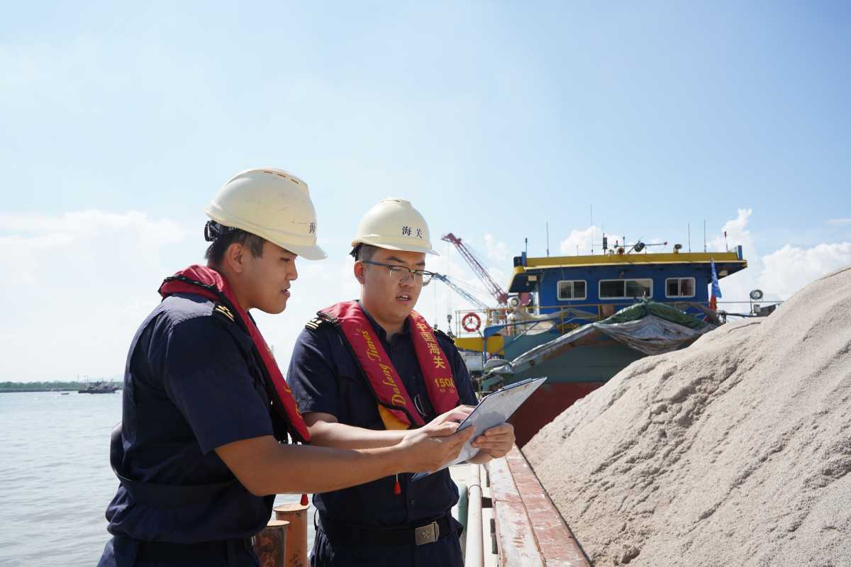 The vessel, carrying 4,400 tons of manufactured sand, was tracked through the green channel of Wanzai Customs on its way to Macao on Wednesday.