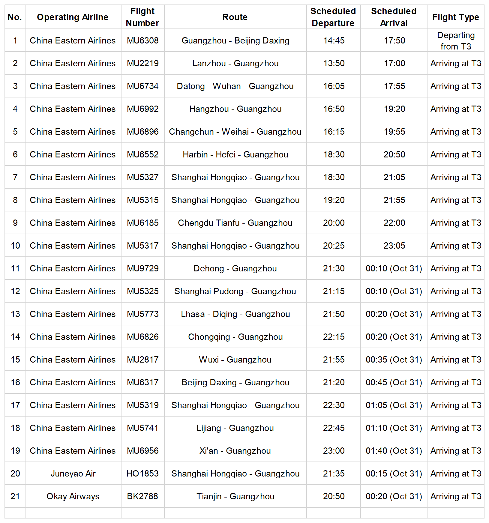 Starting October 30, all long-distance Airport Express bus routes will add a stop at T3. For detailed schedules, check the official "Baiyun Airport Express (白云機場空港快線)" WeChat account.