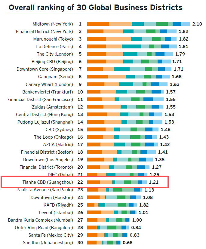 Compiled by EY and the Urban Land Institute, the report benchmarks 30 leading business districts across 19 countries on eight pillars, from talent pools and market access to innovation and sustainability. Tianhe CBD earned particular recognition for its talent magnetism, seamless blend of business and urban life, and a vibrant innovation ecosystem.