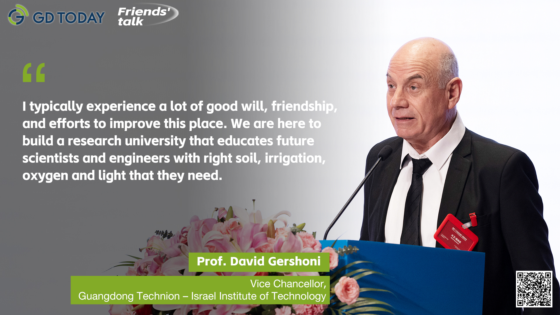 "It's a great honour for me to be worthy of the 'Guangdong Friendship Award'," said Prof. David Gershoni, Vice Chancellor of Guangdong Technion – Israel Institute of Technology (GTIIT) in an exclusive interview with GDToday. "But more importantly, it is an sign that Guangdong Province appreciates the significance of this institute."