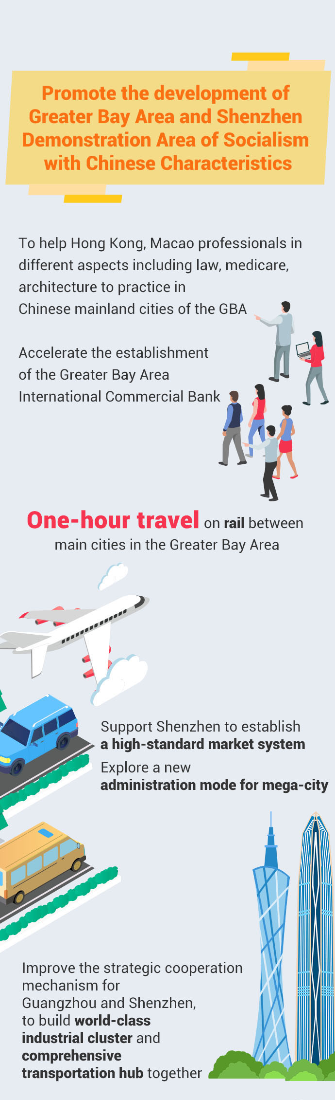 Ma also proposed Guangdong's 14th Five-Year Plan in his work report. In 2021-2025, Guangdong aims to build a strategic spearhead for a new pattern of development, to become a high-tech and industrial innovation center with global influence and further the reform and opening-up. At the same time the province will continue to coordinate the development of urban and rural areas, and make effort to become a province of happiness and attach equal importance to development and safety.