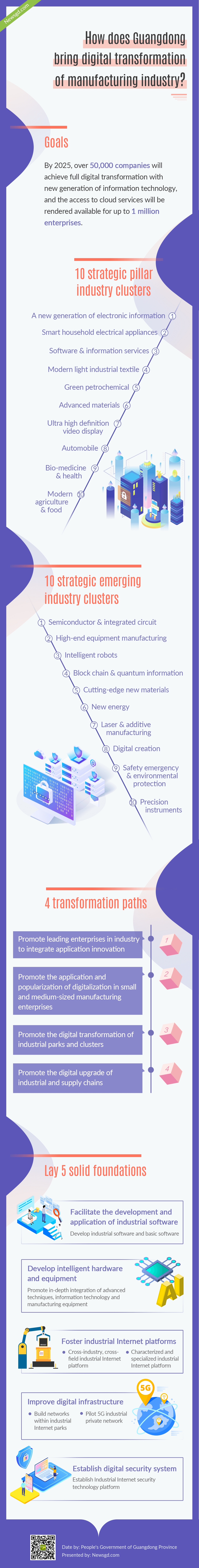 By 2025, over 50,000 companies in Guangdong will achieve full digital transformation with new generation of information technology, and the access to cloud services will be rendered available for up to 1 million enterprises.