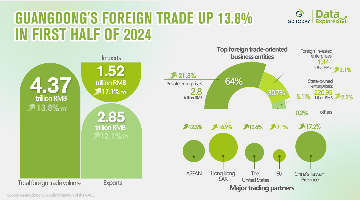 The robust recovery of Guangdong's foreign trade has continued to strengthen since the beginning of 2024. Statistics from the Guangdong Sub-Administration of the GACC show that in the first half of the year, Guangdong's total foreign trade imports and exports reached 4.37 trillion RMB, marking a new high for the same period in history and surpassing last year's figure by 13.8%.