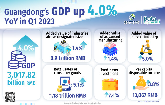 In the first quarter of 2023, Guangdong's GDP reached 3,017.823 billion RMB, up 4.0% year on year, according to the Statistics Bureau of Guangdong Province. The province's economy set off with a strong start in 2023, as evidenced by the recovery of key economic indicators.