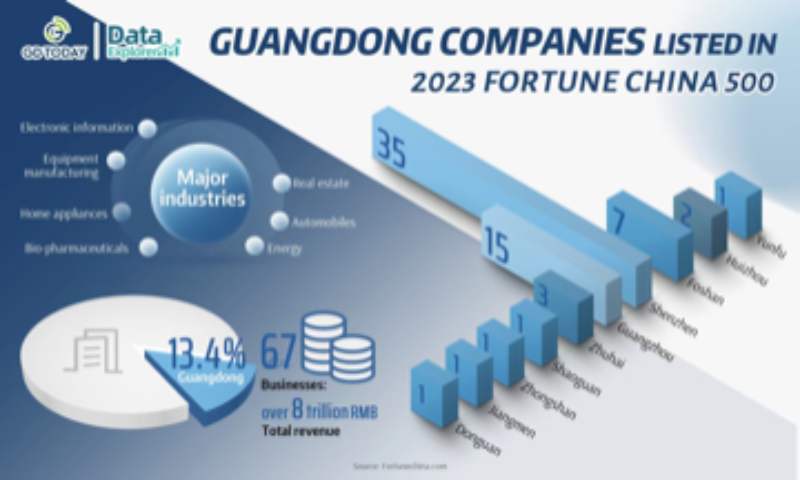 In 2023, 67 Guangdong public companies are listed in the Fortune China 500, accounting for 13.4 percent of the total, with a gross revenue exceeding 8 trillion RMB.