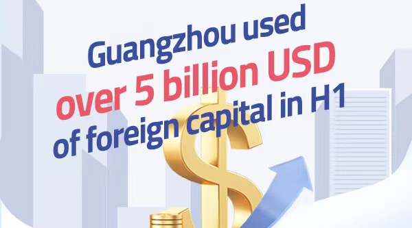 In the first six months, Guangzhou's actual use of foreign capital was 32.623 billion RMB, up 6.1 percent year on year (equivalent to 5.089 billion USD, up 10.1 percent year on year).