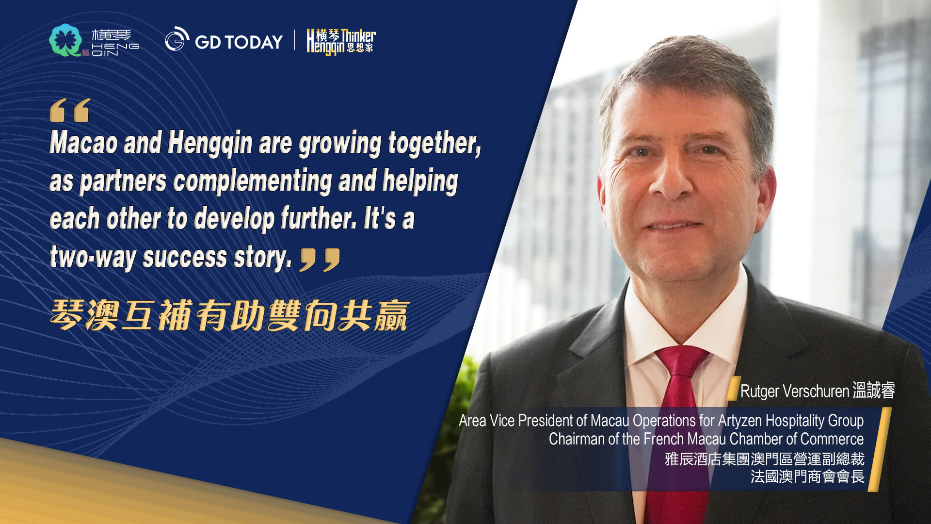 Regarding the next phase of Hengqin’s development following the third anniversary of the establishment of the Guangdong-Macao In-Depth Cooperation Zone, Rutger Verschuren believed that Hengqin’s strategic position in the Greater Bay Area would continue to rise. Its unique geographic location and policy advantages made it a crucial node in the regional economy. Hengqin could effectively leverage Macao’s appeal in tourism, Guangdong’s manufacturing strength, and Hong Kong’s financial expertise to create a complementary economic development model. "Hengqin has the potential to become a center for innovation, entrepreneurship, and cultural exchange. In the future, I hope Hengqin will continue to attract global investors and companies through further policy optimization, expanded international cooperation, and enhanced infrastructure, driving the overall economic prosperity of the Greater Bay Area," said Rutger Verschuren.