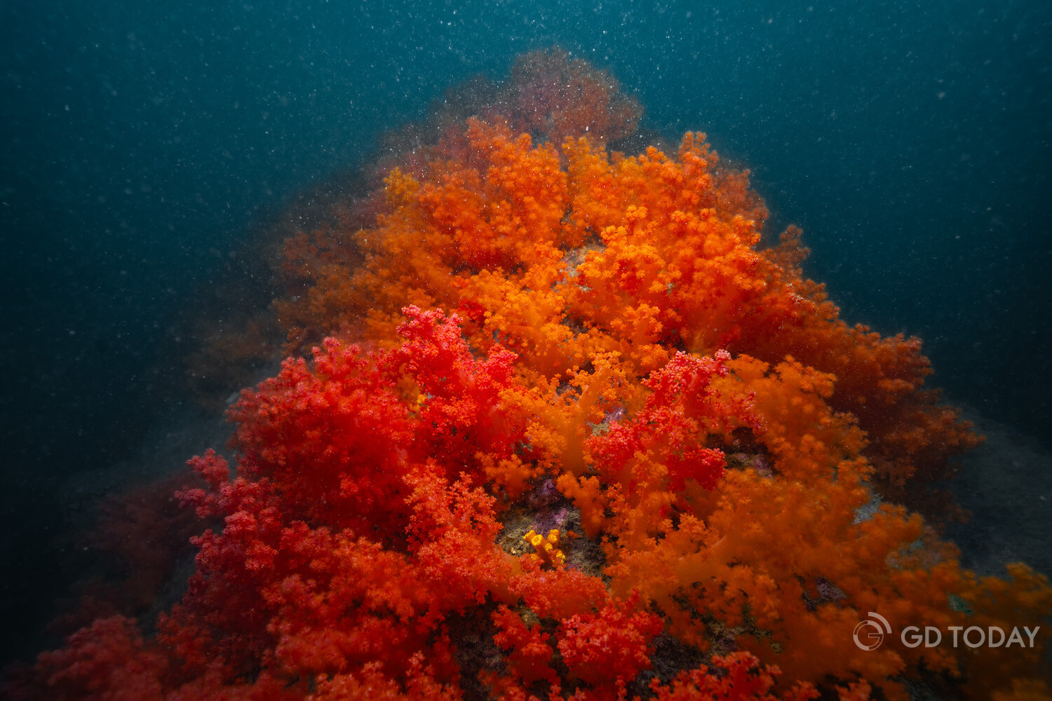 Dendronephthya soft corals are thriving in the favorable water temperature and quality in the waters around Wailingding Island in Zhuhai.