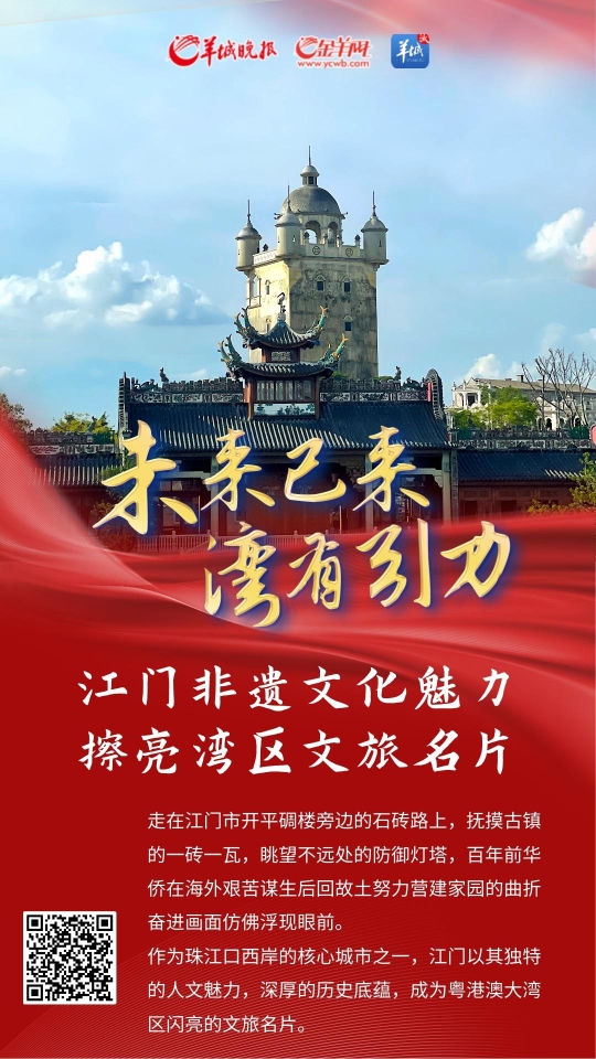 7月22日,“未來已來·灣有引力”網絡主題采風活動接近尾聲,采風團最后一站來到中國著名華僑之鄉、藝術之鄉——江門,參觀開平碉樓、赤坎古鎮等。作為珠江口西岸的核心城市之一,江門以其獨特的人文魅力,深厚的歷史底蘊,成為粵港澳大灣區閃亮的文旅名片。
