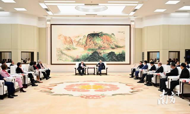 黃坤明代表省委、省政府對訪問團一行到訪表示歡迎,對澳門中華總商會長期以來給予廣東工作、粵澳合作和粵港澳大灣區(qū)建設的大力支持表示感謝。他說,當前,廣東正深入學習貫徹黨的二十大精神和習近平總書記視察廣東重要講話、重要指示精神,圍繞實現(xiàn)總書記賦予的使命任務,緊扣落實省委“1310”具體部署,堅定不移推動高質量發(fā)展,奮力推進中國式現(xiàn)代化的廣東實踐。澳門中華總商會一直堅持愛國愛澳立場,不僅為澳門順利回歸祖國、維護澳門長期繁榮穩(wěn)定、推動“一國兩制”實踐行穩(wěn)致遠作出重要貢獻,也在溝通聯(lián)系粵澳工商界、促進澳門與內地深化合作上發(fā)揮著重要作用。今年是新中國成立75周年,也是澳門回歸祖國25周年,隨著各項政策利好逐步落地,基礎設施硬聯(lián)通和規(guī)則機制軟聯(lián)通加快推進,粵港澳大灣區(qū)及橫琴粵澳深度合作區(qū)發(fā)展?jié)摿θ找骘@現(xiàn),呈現(xiàn)出更加廣闊光明的發(fā)展前景。我們將在習近平總書記、黨中央領導下,緊緊圍繞落實總書記賦予粵港澳大灣區(qū)“一點兩地”的全新定位,攜手港澳乘勢而上加快推進大灣區(qū)建設,突出做好橫琴工作,牽引帶動粵澳互利合作不斷邁出新步伐,更好促進澳門經濟適度多元發(fā)展,服務國家“一國兩制”大局。希望澳門中華總商會繼續(xù)大力弘揚愛國愛澳傳統(tǒng),團結凝聚愛國愛澳力量,支持特區(qū)政府依法施政,為促進澳門長期繁榮穩(wěn)定作出更大貢獻。同時積極發(fā)揮自身影響力,帶領澳門工商界朋友充分利用政策利好、抓住有利時機,更加深度參與粵港澳大灣區(qū)及橫琴粵澳深度合作區(qū)建設,聚焦服務橫琴“四新”產業(yè)與澳門“1+4”產業(yè)布局加大宣傳推介力度,廣泛牽線搭橋,引導更多優(yōu)質要素資源向大灣區(qū)、橫琴集聚,促成更多標志性項目和成果,更好服務琴澳一體化、助力粵港澳大灣區(qū)建設。也希望澳門中華總商會發(fā)揮資金、技術、管理、人脈等所長,緊密對接廣東實施“百千萬工程”、制造業(yè)當家、海洋強省建設等重點工作,推動更多企業(yè)和人才來粵投資興業(yè)、創(chuàng)新創(chuàng)業(yè),助力廣東高質量發(fā)展、現(xiàn)代化建設。