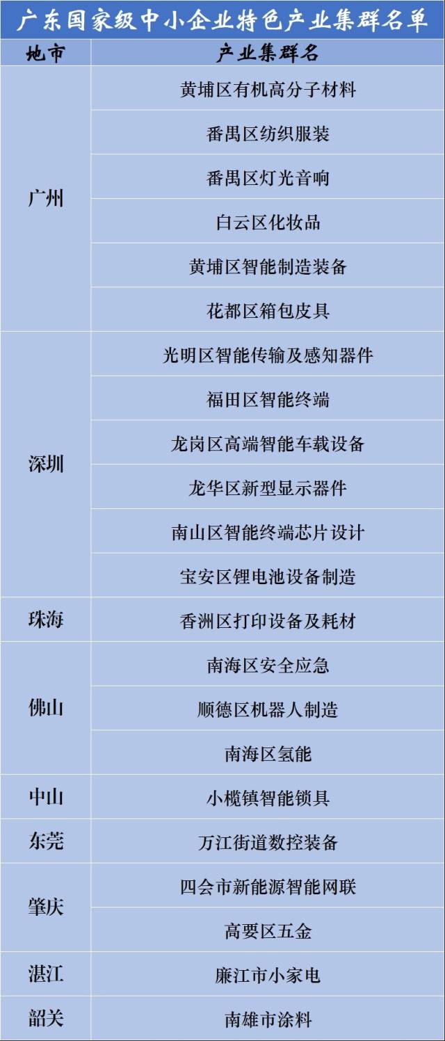 在此前工信部公布的三批國家級中小企業特色產業集群中,廣東占據22個,數量與山東、浙江共處國內第一方陣。