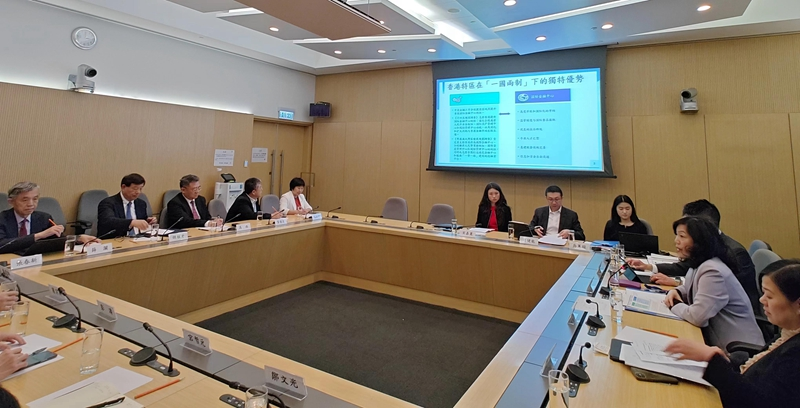代表團(tuán)實(shí)地調(diào)研了香港證券交易所,并與香港特區(qū)政府財(cái)經(jīng)事務(wù)及庫(kù)務(wù)局常任秘書長(zhǎng)甄美薇、香港金融管理局助理總裁許懷志、香港證券交易所董事總經(jīng)理蘇盈盈、周健男進(jìn)行座談交流,深入了解香港鞏固提升國(guó)際金融中心、強(qiáng)化全球離岸人民幣業(yè)務(wù)樞紐、國(guó)際資產(chǎn)管理中心及風(fēng)險(xiǎn)管理中心有關(guān)情況。