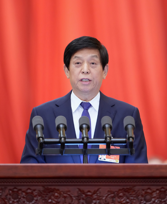 受全國人大常委會委托,栗戰書委員長向大會報告全國人大常委會工作。栗戰書在報告中指出,在以習近平同志為核心的黨中央堅強領導下,全國人大常委會堅持以習近平新時代中國特色社會主義思想為指導,深入貫徹習近平法治思想,履職盡責、積極作為,為推動重大工作部署、應對重大風險挑戰、維護國家安全提供法律保障,有效發揮了國家權力機關的職能作用。