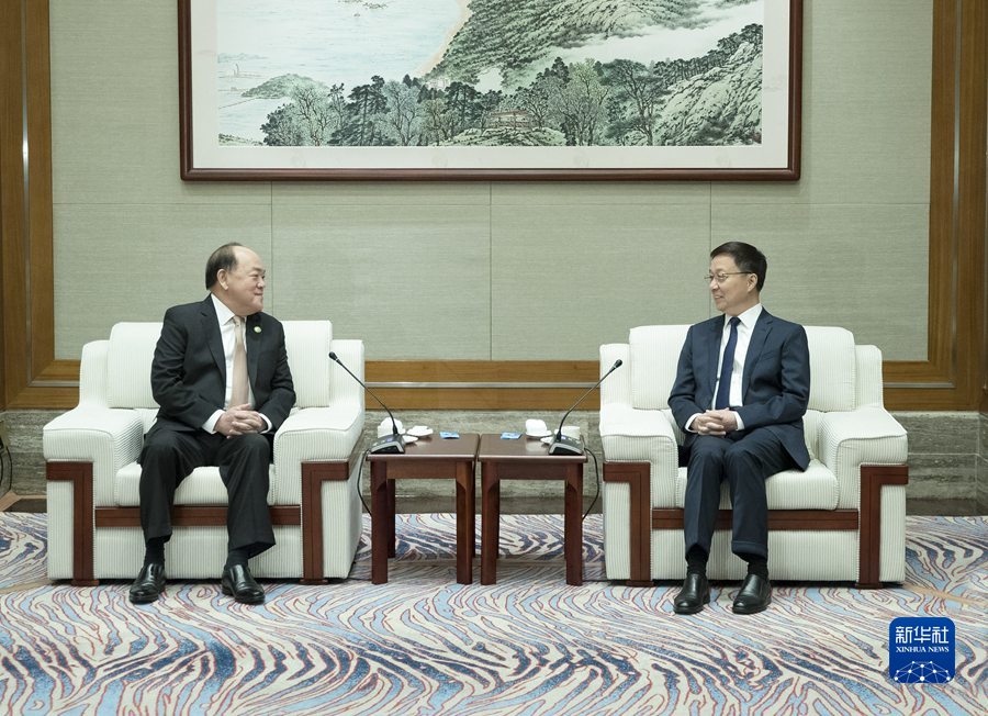 韓正充分肯定澳門特別行政區政府近期工作,對澳門特別行政區第七屆立法會選舉依法順利舉行表示祝賀。韓正說,這次選舉取得了圓滿成功,“愛國者治澳”原則充分彰顯,是具有澳門特色的“一國兩制”的成功實踐。橫琴粵澳深度合作區的核心使命是促進澳門經濟適度多元化,將為澳門經濟社會發展開拓廣闊空間、注入強勁動力。希望澳門用好這個平臺,加強粵澳雙方合作,創新體制機制,牢記初心,久久為功,推動合作區建設取得實質進展和顯著成效。疫情防控是澳門經濟社會穩定發展的前提,要繼續毫不放松做好防疫各項工作。