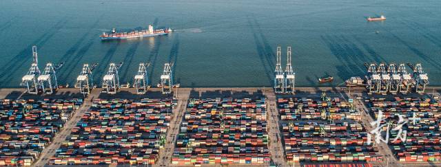 2023年,廣東自貿試驗區國際班輪航線達366條;集裝箱吞吐量3295萬標箱,貨物吞吐量5.1億噸,分別占全省45.7%和23.2%。