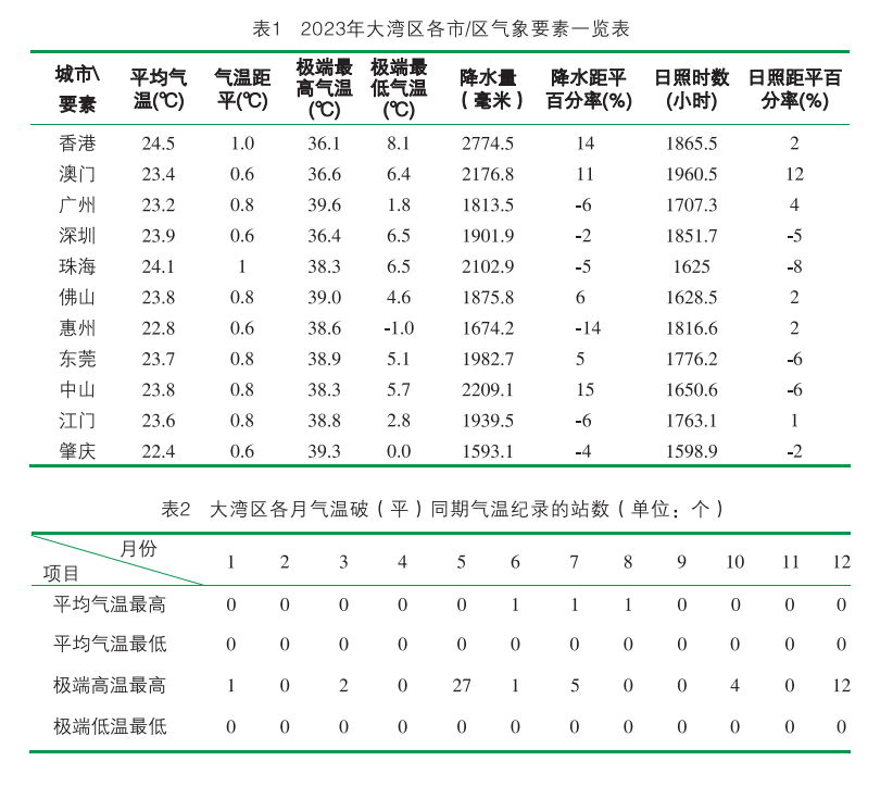 《氣候公報》顯示,與常年(1991-2020年的統計值)相比,2023年大灣區各地氣溫一致偏高,全年平均氣溫23.3℃,平均最高氣溫38.2℃,均為歷史第二高。