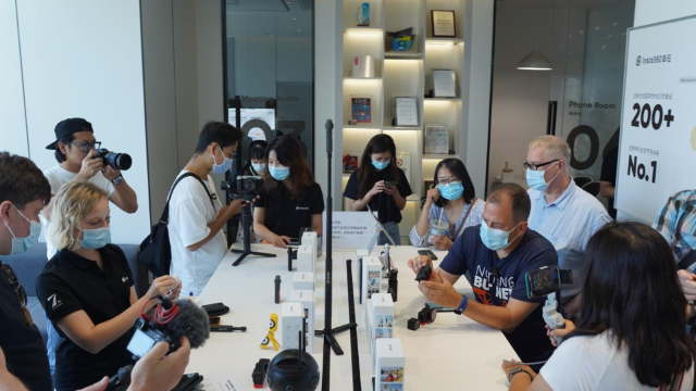 攝影攝像器材是外國(guó)“網(wǎng)紅”們最親密的“伙伴”。在位于前海的影石Insta360產(chǎn)品展示區(qū),外國(guó)“網(wǎng)紅”對(duì)360度全景相機(jī)、運(yùn)動(dòng)相機(jī)、虛擬現(xiàn)實(shí)(VR)等專業(yè)影像設(shè)備愛(ài)不釋手,馬上通過(guò)社交平臺(tái)與他們的粉絲分享,為中國(guó)的影像科技品牌“帶貨”。