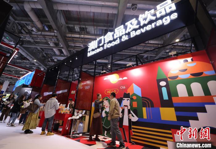 2023年11月7日,第六屆中國國際進口博覽會在國家會展中心(上海)舉行,食品及農產品展區澳門展臺吸引參觀者。 中新社記者 楊可佳 攝