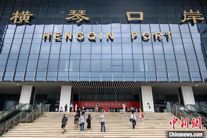 廣東省珠海市,旅客在橫琴口岸新旅檢大樓外拍照。(資料圖) 中新社記者 陳驥旻 攝
