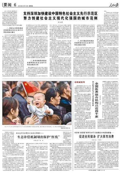 ·9月19日,《人民日?qǐng)?bào)》登載國(guó)家發(fā)展和改革委員會(huì)主任、黨組書記何立峰的署名文章《支持深圳加快建設(shè)中國(guó)特色社會(huì)主義先行示范區(qū) 努力創(chuàng)建社會(huì)主義現(xiàn)代化強(qiáng)國(guó)的城市范例》。文章表示,中共中央、國(guó)務(wù)院正式印發(fā)《關(guān)于支持深圳建設(shè)中國(guó)特色社會(huì)主義先行示范區(qū)的意見》,這是以習(xí)近平同志為核心的黨中央立足新時(shí)代中國(guó)特色社會(huì)主義建設(shè)大局作出的一項(xiàng)重大決策,既體現(xiàn)了黨中央對(duì)深圳改革開放取得成就的充分肯定,又飽含著對(duì)深圳在新時(shí)代繼續(xù)深化改革開放的殷切期望,為深圳未來發(fā)展提供了強(qiáng)大動(dòng)力和根本遵循。