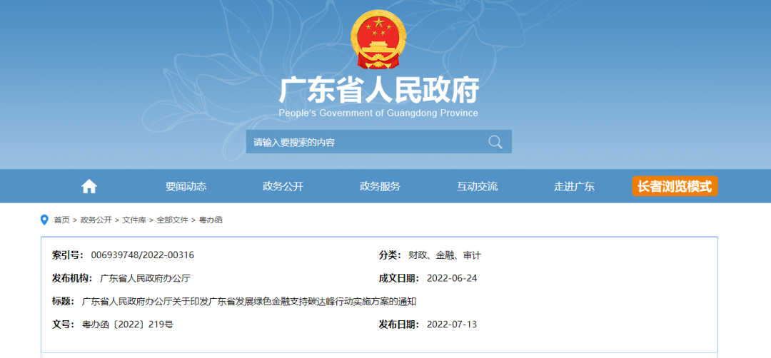 7月13日,廣東省人民政府辦公廳發(fā)布通知,正式印發(fā)《廣東省發(fā)展綠色金融支持碳達(dá)峰行動的實施方案》(以下簡稱《方案》),要求各有關(guān)單位結(jié)合實際認(rèn)真貫徹執(zhí)行。執(zhí)行中遇到的問題,可向省地方金融監(jiān)管局反映。